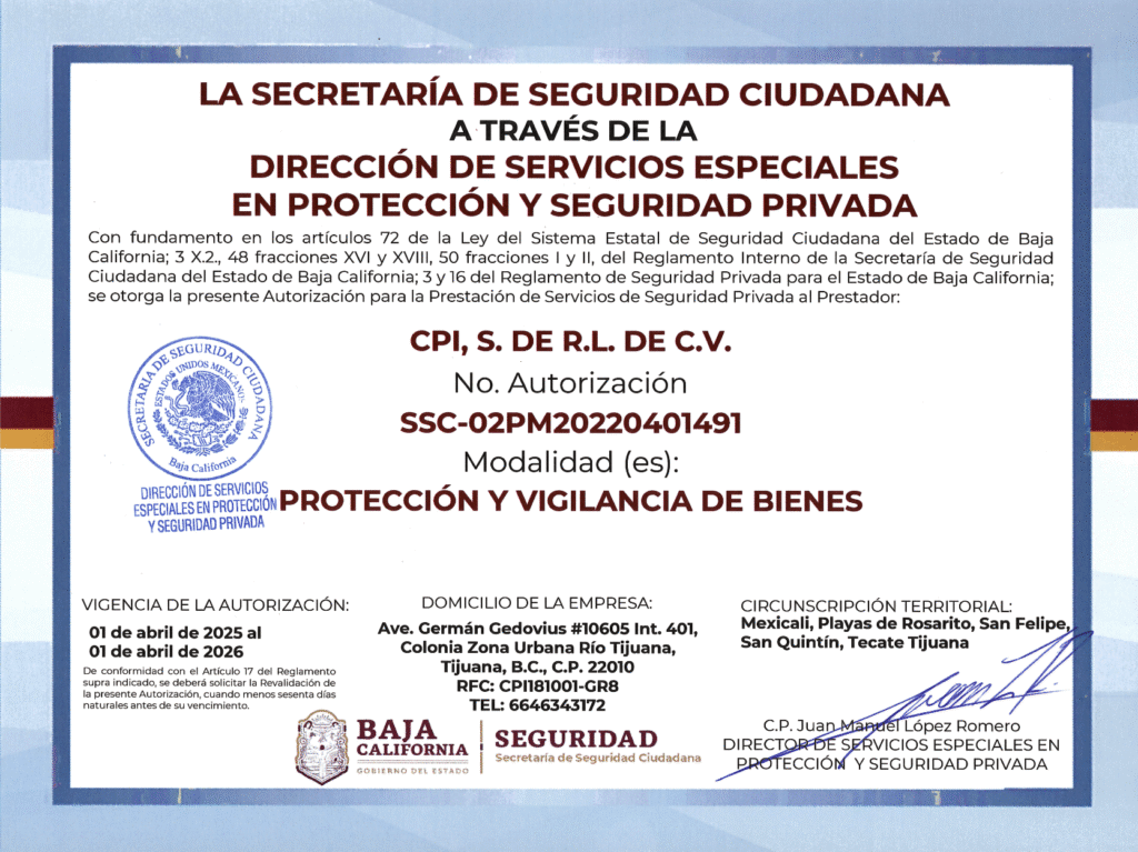 Custodia y Protección de las instalaciones que se encuentran bajo el resguardo, así como la salvaguarda de toda persona que se encuentre dentro de la propiedad, buscando siempre el resguardo de los bienes materiales.